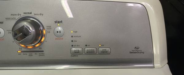 MAYTAG ELITE WHITE ELECTRIC DRYER. THIS IS A FEW YEARS OLD. THIS HAS MULTIPLE CYCLES, FEATURES & SETTINGS AS WELL. THIS IS A REALLY NICE, GREAT RUNNING, HEAVY DUTY, SUPER CAPACITY UNIT THAT WAS WELL MAINTAINED. THIS HAS MULTIPLE DRYING CYCLES. WE HAVE COMPLETELY CLEANED THIS UNIT INSIDE & OUT. I HAVE ALSO FULLY TESTED ALL THE CONTROLS & SETTINGS ON THIS UNIT, EVERYTHING WORKS & RUNS PERFECTLY FINE. DOES HAVE SPOTS THAT BEEN TOUCHED UP WITH APPLIANCE PAINT. SHOULD YOU HAVE ANY QUESTIONS PLEASE ASK. THANKS FOR LOOKING.