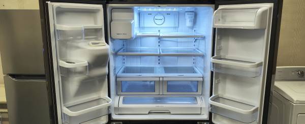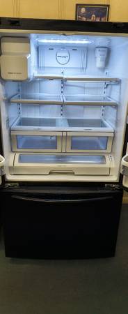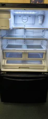 Samsung Elite Black 26 Cu. Ft. French 3 Door Refrigerator/Freezer. This Refrigerator Is A Few Years Old, but Still In Like New Condition with a couple little digs. This Has All The Shelves & Storage Drawers. This Also is Setup with Two Installed Ice Makers & A Water Dispenser. This Unit Retailed for Around $2995.00. We have Completely Cleaned This unit Inside & Out. I have also Fully Tested All The Controls, Settings & Temperatures on this unit, Everything works Perfectly Fine. Should you have any questions please ask. Thanks.