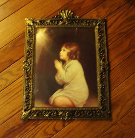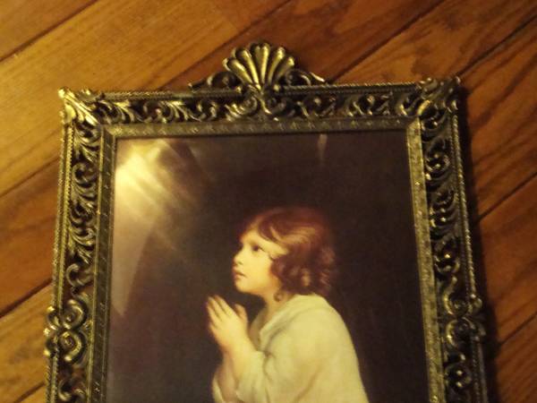 BEAUTIFUL VINTAGE SOLID BRASS FRAMED PICTURE...PRAYING CHILD/MADE IN ITALY 1920, MINT CONDITION.