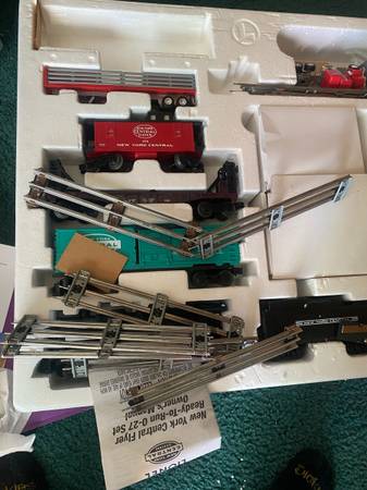 Nice train set cast iron train with metal track containers are plastic.. 50 O.B.O