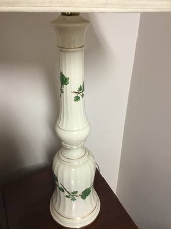 Beautiful vintage lamp white with green leaves $50 cash estate sell