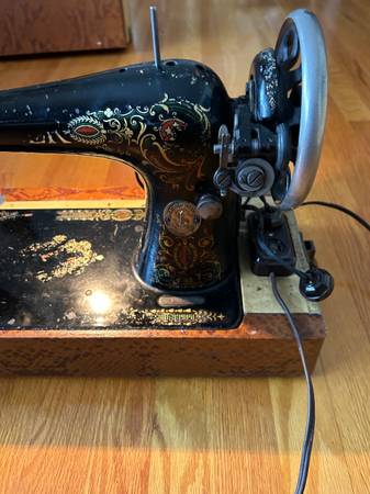Antique Singer Model 66 Red Eye Electric Sewing Machine--SN G3218245. Machine produced Aug. 27, 1913 in Elizabethport, NJ USA per ISMACS lookup. Plugged in and both the light and the motor work. The machine is in excellent condition for its age, however, some of the decals are worn due to use. The carrying case is original and in great condition to carry the machine. There is an electric foot/knee pedal and it is in working condition. The electrical cords do need replaced as the insulation has deteriorated and is missing in certain areas. The machine has been stored indoors in its case and there is no rust or dirt. With new cords and servicing, the machine will work like new. Please call show contact info