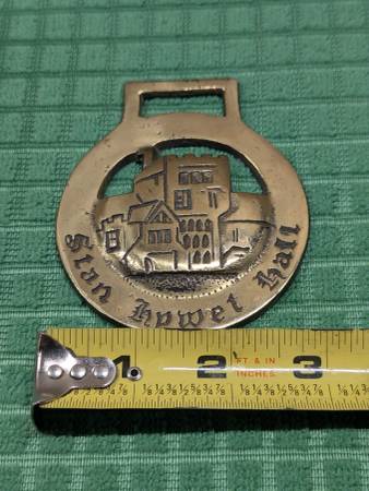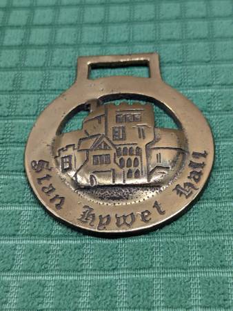 Beautiful collector piece from Stan Hywet Hall in Akron, OH. Vintage brass horse medallion from our clean and smoke-free home. Made in England. 3" wide x 3.5" tall. Pick up only with cash, no shipping.