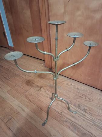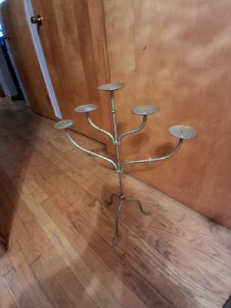 Single 24" tall 5 candle Vontagr Antique 3 leg 4 arm