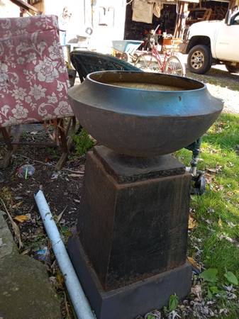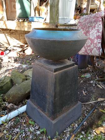 37 inch tall, 21 inches wide at the mouth. 18x18inches at base of cast iron planter. Manufactured in Dayton OH.