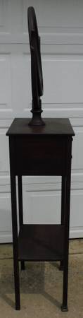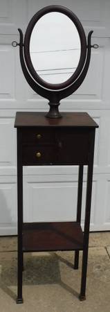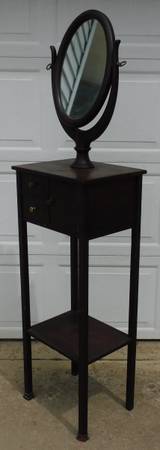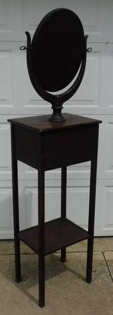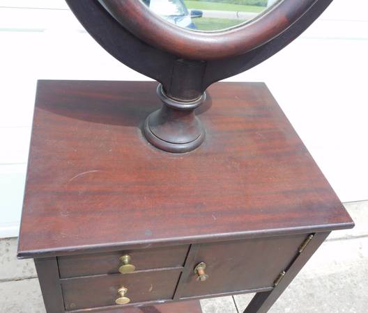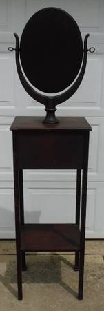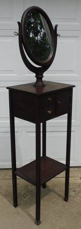 Up for sale is this antique mahogany men's shaving stand with an oval mirror. It is in good shape, with some wear. It does have some scratches on it. Please see the pictures and video and judge for yourself. It is approximately 68" tall, 17 3/4" wide and 14" deep. Cash payment can be made at the time of pickup. If interested, please call or text me at 330-five0six-3191. Thanks, Jerry.