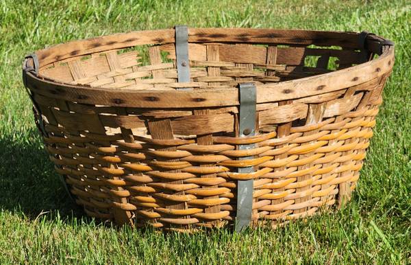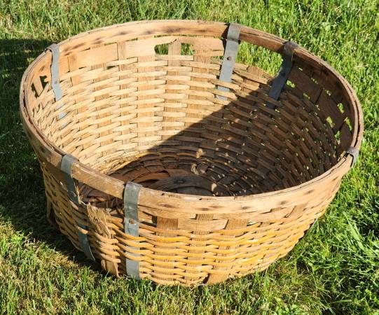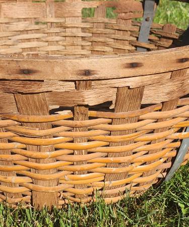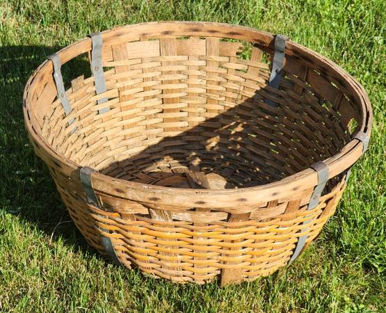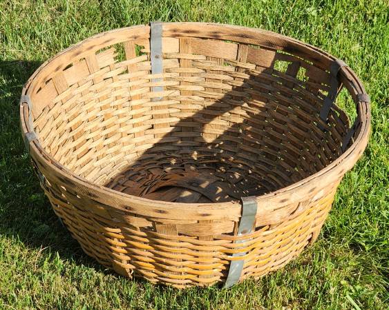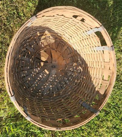 Up for sale is this large antique gathering basket. A great display in your home or kitchen. It was probably used for gathering cotton, apples, peaches or other fruits. It is in fair to good shape. Please note that there is some minor damage it the basket, but not bad for it's age. Please look at the pictures and video and judge for yourself. It is approximately 12" tall and 2 1/2" to 27" round. Cash payment can be made at the time of pick up. If interested, please call or text me at 330-five0six-3191. Thanks, Jerry.