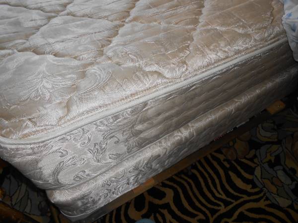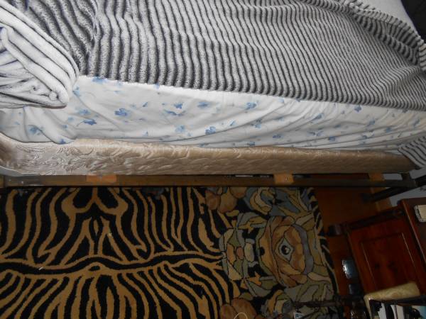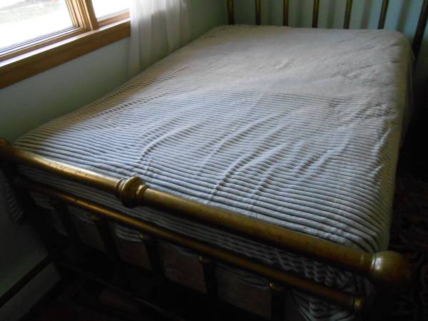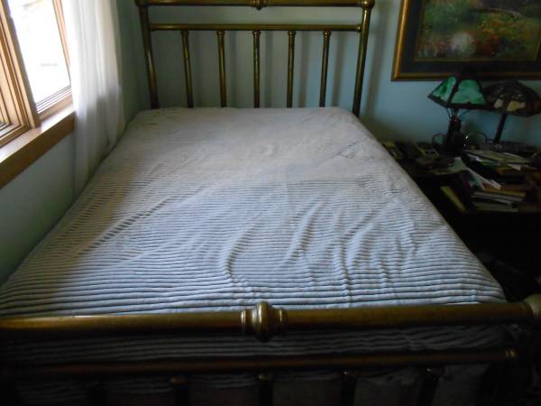 very nice antique brass bed and newer box spring and mattress . just needs a good polishing