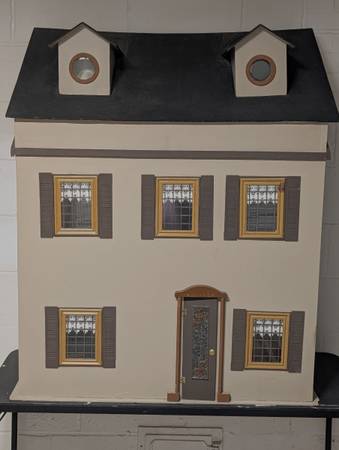 Beautiful customized vintage Barbie scale wood dollhouse. 46" tall, 36" wide, 15" in depth. Many intricate and ornate details throughout. Please see all pics. Would make a big smile this holiday! Roof is removable for transport. Cash only, pickup in Brookfield.