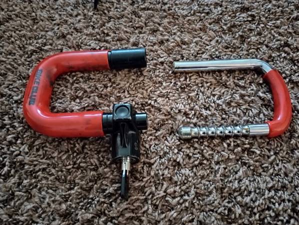1- Bike Club brand heavy duty bike lock. Missing part of rubber coating but still in good working condition. Originally valued at $20.