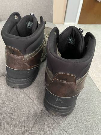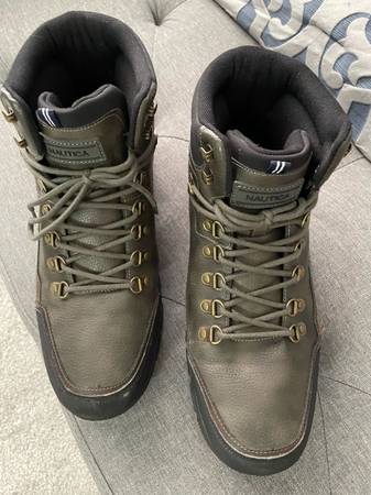 Dark green and brown leather boots worn once and navy blue with white soles dress/casual shoes never worn. 50 for both or 20 a pair