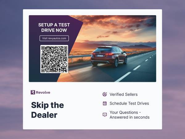 β Revolve helps buyers get their questions answered without having to wait for responses directly from the seller. Both parties are protected throughout the exchange. Use this vehicle's unique link below to inquire about this vehicle and request an in-person inspection and/or test drive!