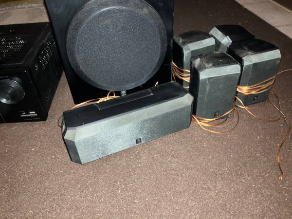 You get the Onkyo tx sr373 receiver that works great sounding. I just never use it. Also 5 Yamaha speakers with sub woofer and cords. Receiver has working remote. Paid about 500 for the whole set up and barely used! Comes with speaker cord and sub cords too!