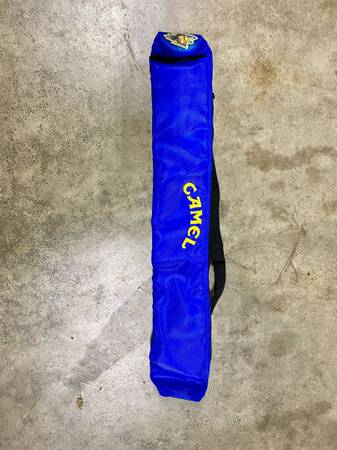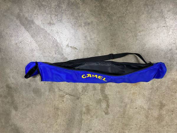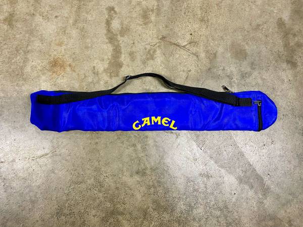 Blue camel six pack cooler carrying bag with adjustable shoulder strap. New. Some use them for pool cue / stick case.