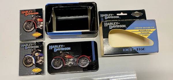Harley Davidson playing cards limited edition historical Collector playing cards New in original tin packaging.