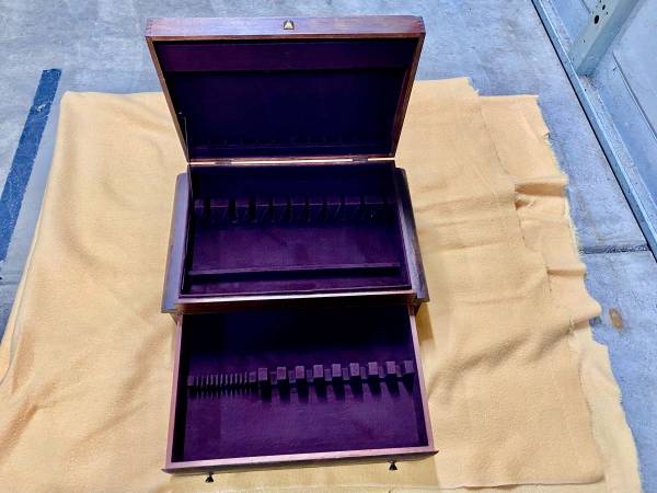 Vintage wooden silverware box with a drawer. Could be used for several different things.