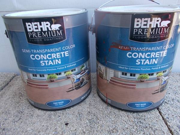 One full/ unopened and one almost full cans of Behr semi transparent concrete stain in English Brick color. Bought for a outside wall and tried it out and found out it would not work for my project....
