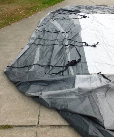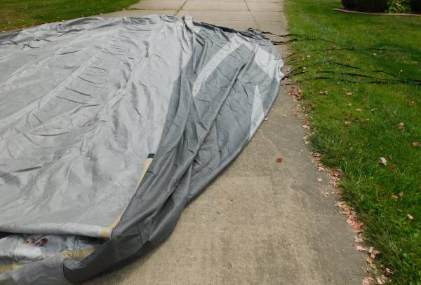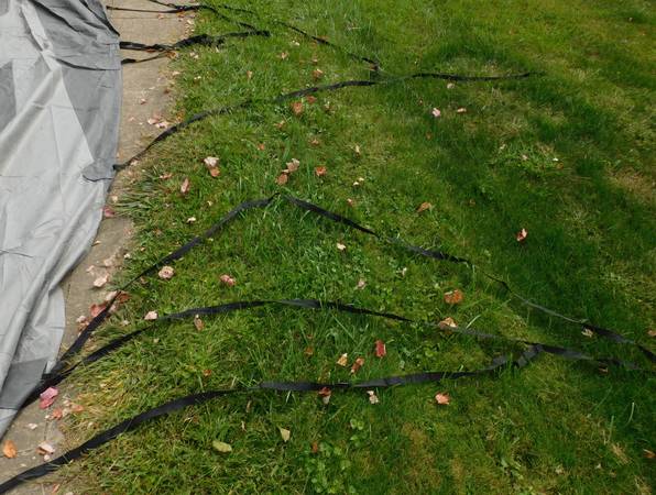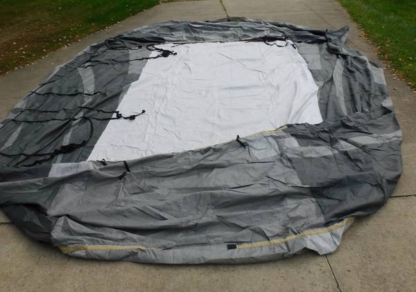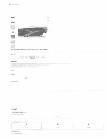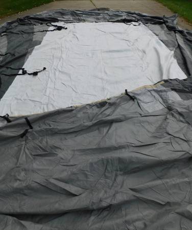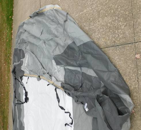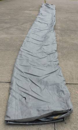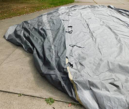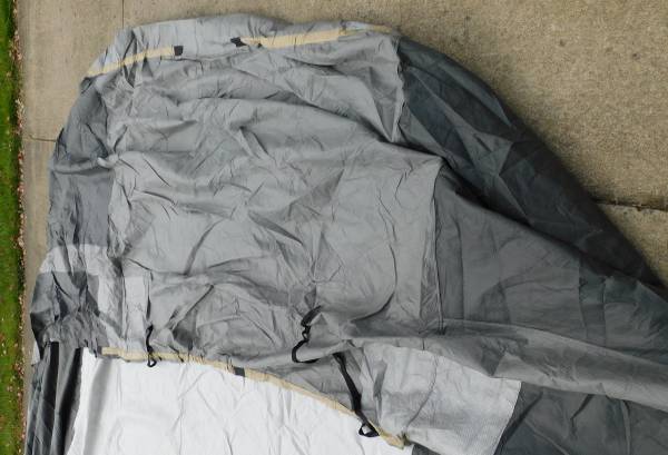 Up for sale is this ADCO 36844 Designer Series Olefin HD Travel Trailer Cover. Fits trailers 26' 1" - 28' 6". It is gray in color. Sells new at Walmart for over $400. It comes with extras also. It is in good shape, with the exception of a 3" hole at one end (looks like a mouse got to it. We were told it was only used for 3 months. Please look at the pictures and video and judge for yourself. Cash payment can be made at the time of pick up. If interested, please call or text me at 330-five0six-3191. Thanks, Jerry.