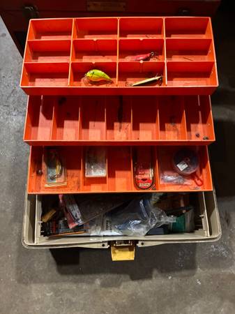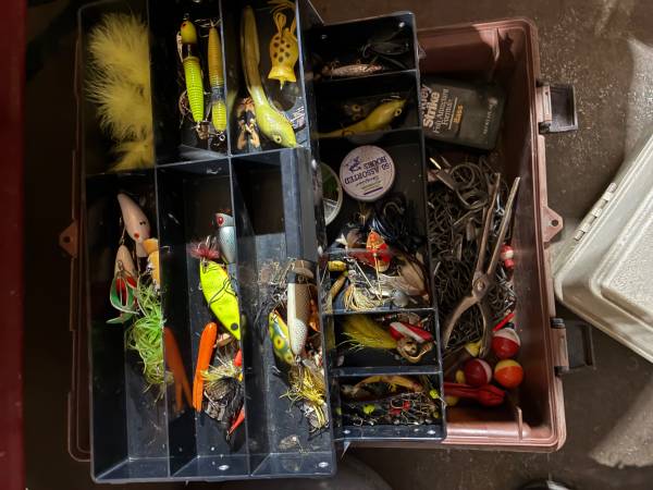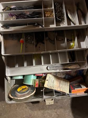 12 fishing poles. .Some with the reels on.three tackle boxes, with a lot of hooks,swivels, string, knife , bobbers, Lures, Fishing net, A new minnow bucket all for 135.00 call or text