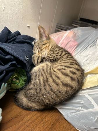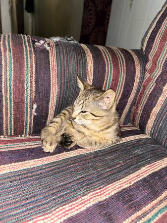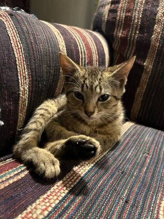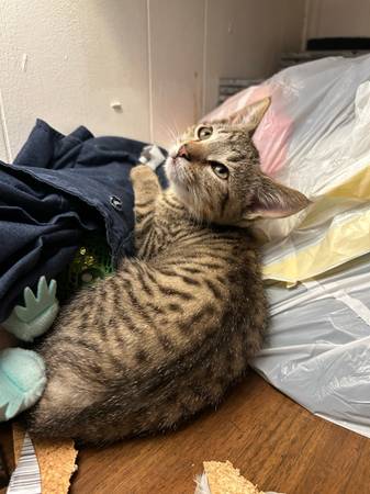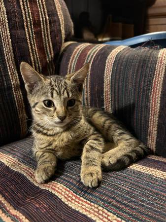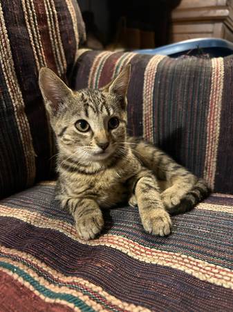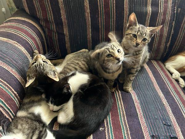 Three tabby kittens, and one black and white all male except one of the tabbies.