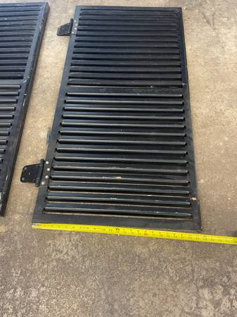 1/4" thick Steel Grate. 23-1/2" x 47-1/2" with heavy duty hinges. Each grate weighs 140 lbs. Designed for window well escape doors but could be used as cover for storm water basin or foot bridge....
