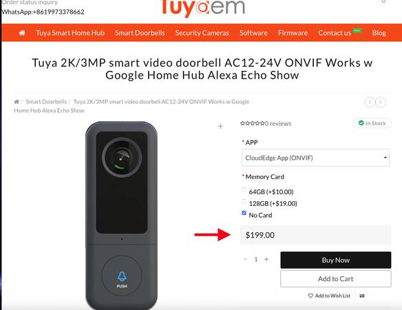 The Tuya smart video doorbell doesn’t use the battery, it has power input design that supports DC12V and AC12-24V input. The doorbell can work with AC transformer of your existing doorbell chime system. Now you’re able to upgrade with your existing doorbell system easily. The camera has embedded with ONVIF protocol, it is compatible with ONVIF Profile S. Hence it works with third-party IP video surveillance system. The doorbell (Cloudedge version) can work with network video recorders (e.g. Hikvision, Dahua), can deliver video stream to your network attached storage (Synology, Qnap) system, or be integrated into your home automation system.