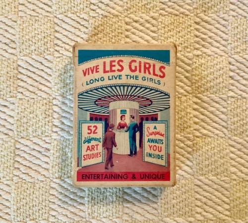 Excellent Condition 1950’s Vive Les Girls Naughty Risqué Playing Cards in Original Box with Seal. Made by Frederick Enterprises in St. Louis Mo. Entertaining & Unique Collectible. Can Ship via...