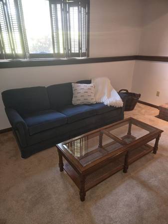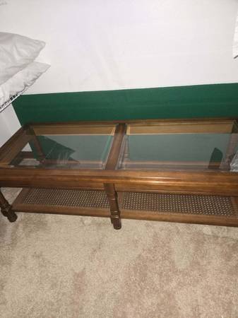 Wood and Glass Coffee Table 21” x 4’2” x 15”