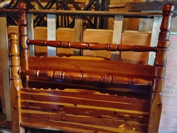 18th Century Bed Frame Needs a minor repair to attach. Has been renovated to a 6 ft long to accommodate A fullsize mattress fits Overall beautiful shape.