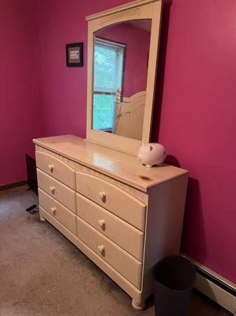 MOVING SALE— 9 am to 2 pm October 24th — girls queen size bedroom set, dining room table with 3 chairs, beautiful oak buffet, 4 drawer fireproof filing cabinet, decor. Everything must go!!! 6732...