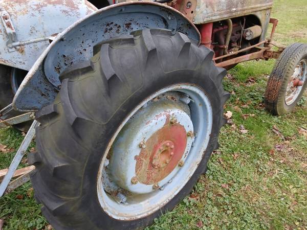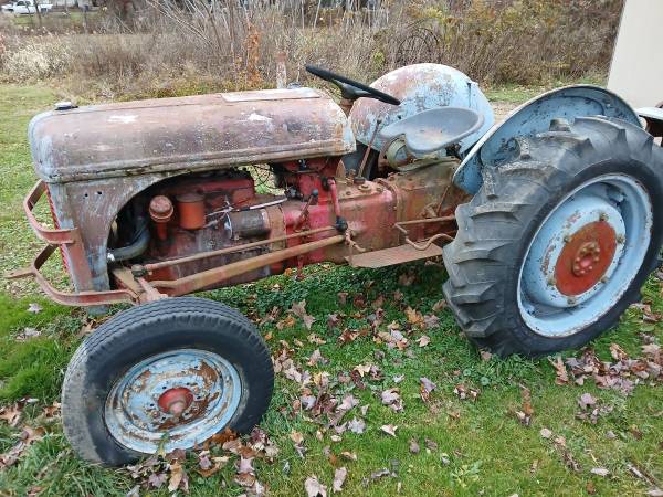 For sale a ford 9 N tractor in unknown condition. This was bought as is and has never been messed with. The block has been cracked and looks to have been repaired, the tires are decent condition, and it has the hi lo transmission. This is being sold as is parts or repair.