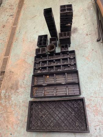 Various containers for starting plants - vegetable, flower, etc. Also, flats to handle and organize. Call/text/email with any questions.