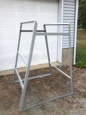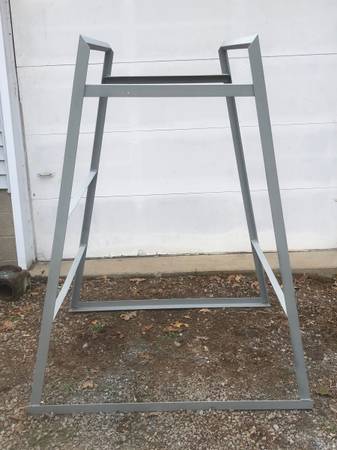 Steel stand for holding 300 gal fuel tank high for gravity powered discharge.