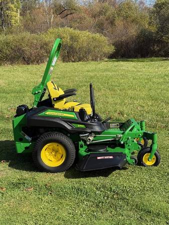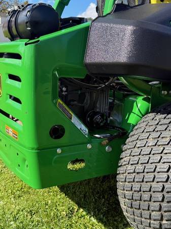 Excellent condition John Deere Z915B commercial zero turn mower. It is equipped with the larger 60" 7-Iron II commercial deck, 25hp V-tiwn, optional weight adjustable JD suspension seat kit with arm rests (nearly 1K for seat kit) with adjustable arm rests, folding roll bar and more. The machine has just been serviced including oil and filter change (JD filter and Schafer's synthetic 10w30 oil), fuel filter, recent inner and outer air filters, newer blades that have just been sharpened, underside of deck cleaned and machine greased. It currently has only 639 hours. New battery in 2022. All maintenance followed by JD manual (which is included) or before.Garage kept. Has all safety guarding for the deck still in place like spindle covers and discharge chute as well. There are other options available like a mulching kit and powerflow bagger system. Never used commercially, just residential. This is not a model you get at Home Depot or Lowes. Feel free to ask any questions or for any additional picture requests. Ready to go! Cash only please at pickup, if a check is necessary it will need to clear my bank before machine is released. Thanks for looking!