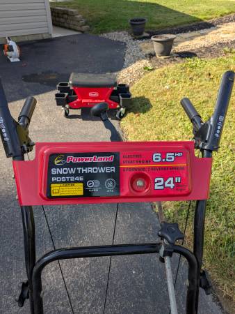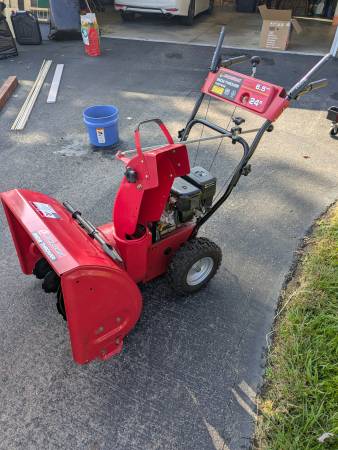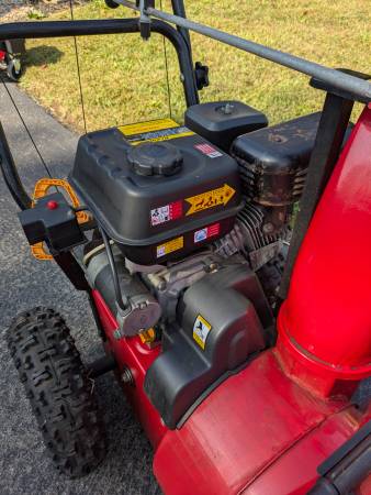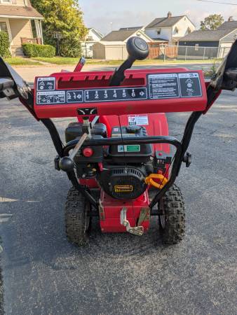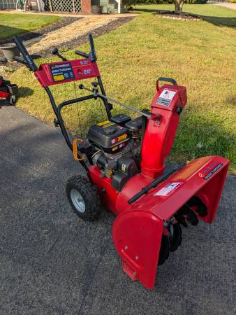 Clean snowblower for sale. Been sitting in my garage for 2 winters, it's only been used about 8 times since purchased. Trying to clean out my garage for room and this has to go. Just needs a little love and should be good to go. One tire needs air, maybe flat but I'll either get a tire or take a few bucks off if it won't inflate. Due to spam and scam I won't respond to "is it available" or anything of the sort