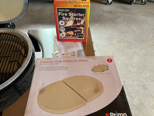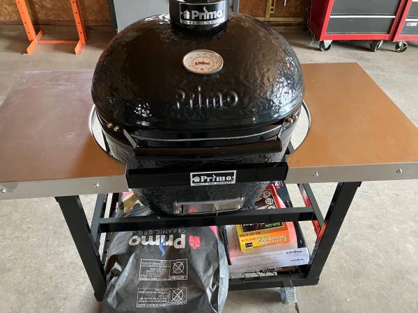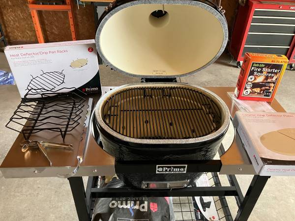 Primo 775 Grill-Smoker. Never used. Comes with heat deflectors,drip pan,fire starter,extra racks and 20# of wood charcoal. Has the stainless cart also.Big savings over a new one today. $1600.00
