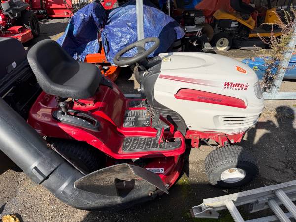 For sale is a 42 inch white garden tractor with bagger system. Selling for someone we know price is 575 firm starts right up oil changed every year, etc..