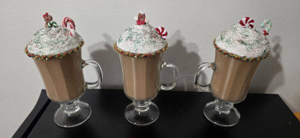 Faux glass coffee drinks $15 each Plastic faux tea cups drink $10 each Great for gifts