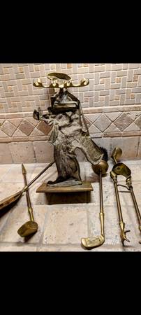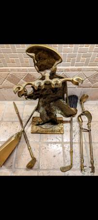 High quality and beautiful functional brass golfer fireplace set from our clean and smoke-free home. Perfect for display or use. Nice and compact only 15" high x 9" wide, but don't let the small...