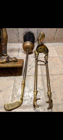 Vintage Heavy Brass Golfer Fireplace Set - household items - by...