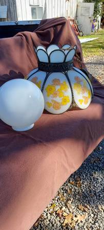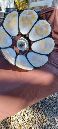 Excellent condition hanging tulip syle lamp.Would be a great addition to breakfast nook ,farmhouse style design theme on petals .Great Christmas gift, just like the one you remember from your early...