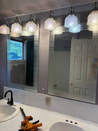 Pair of matching bathroom mirrors measuring approximately 33inLx24inw. In good condition.
