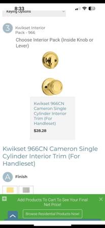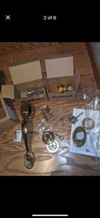 Kwikset Chelsea handle set with a Cameron style knob deadbolt lock as smart key technology brass in color like new.. selling for $130 new asking $50