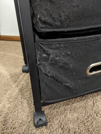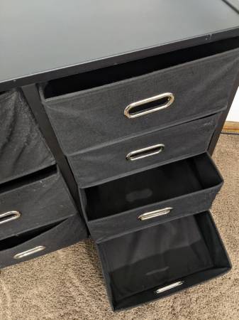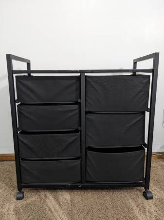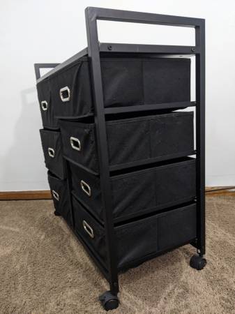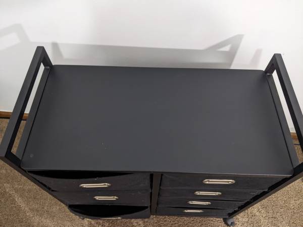 The drawers are pretty beat up but the cart is still in good condition. It has 3 large drawers and 4 smaller drawers.