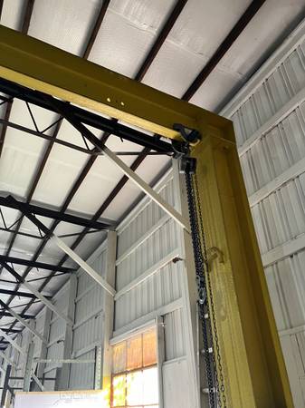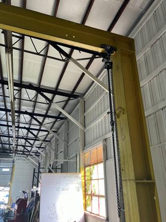 The upright pices are 12”x12” I beam with about an .035 flange. About 14’ tall with a large base bolted to the floor. The cross piece is approximately 36’ long. I currently have a 2 ton hoist mounted on it, but I’m sure it would handle a much heavier hoist. The uprights are welded together. The cross beam is bolted to the uprights. You bring a lift of some sort, and a trailer to haul. I will help disassemble and load. I looked up weight, and each piece should be under a ton