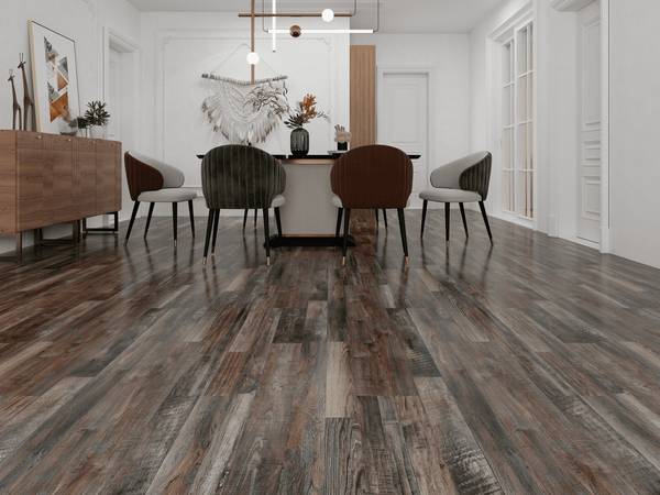 The color of this beautiful flooring is called Mesquite. Selling for $2.59 sq/ft/ $77.80 per box, this new in box waterproof click lock vinyl would look great in any room of your home or office. Each box has 8 - 9" x 60" planks that total 30.04 sq/ft. It is a 6.0 mm with attached pad, 28 mil/ac4 diamond tec commercial wear layer. It has a micro bevel edge and has an embossed wood grain texture. Sold by the box only!