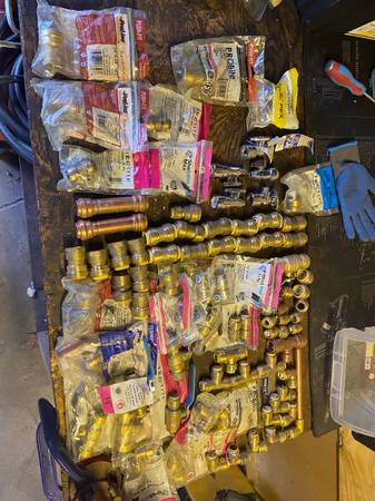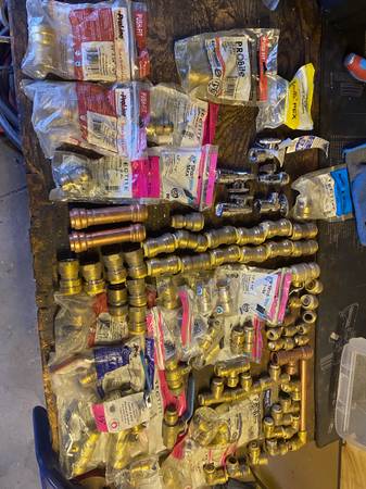Some fittings still in bag, others have been removed from bag to store in box on truck but are mostly unused. 10% of fittings look like they’ve been used (visible wear/pipe dope on fitting/mark on fitting release) however all fittings are still in usable condition.