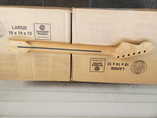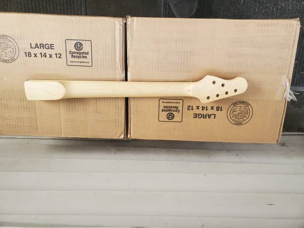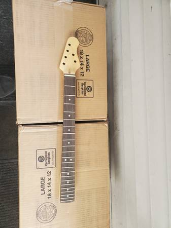 One guitar neck is a strat style 22 fret baked maple neck with baked maple fretboard. 2nd neck is a musicman style which is a maple neck with composite fretboard. The body is a alder strat style. The necks are in great condition. Both straight. The body has dings but can all be steamed out. $75 for all 3. Ask any questions. I'll be happy to answer.
