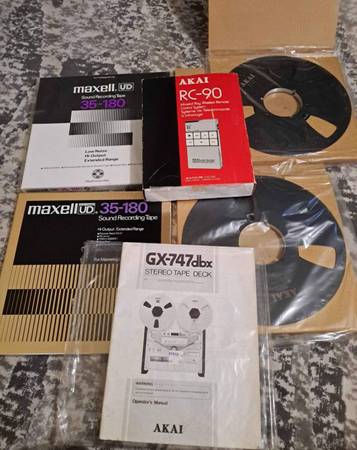 Akai 10.5 Metal Reel. * (2) maxwell UD 35-180 Sound Recording Tape. * Akai RC-90 Infrared Remote—Like new. * Reel to Reel DUST COVER (Not in the Picture,However,it will be sold together with it). *...