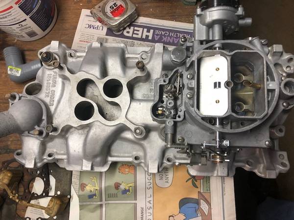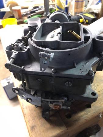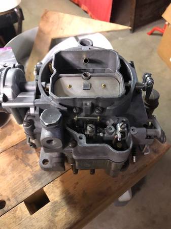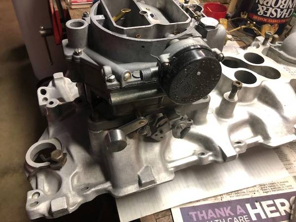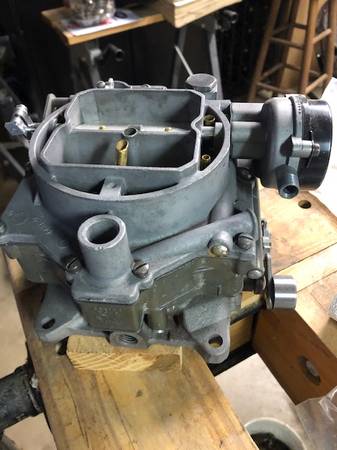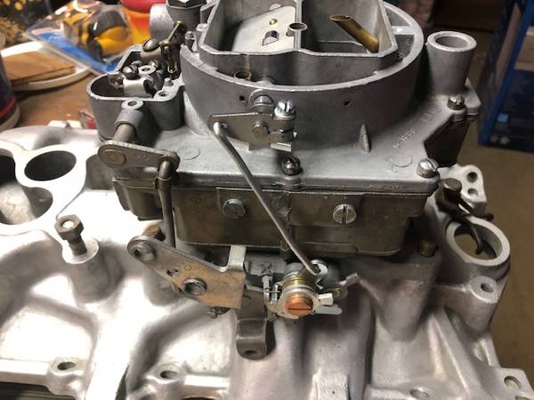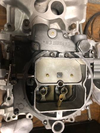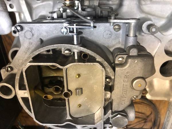 1958 to 1961 Corvette or Chevy rear 270HP carb with choke. 049 body, 6-1299 top, carb is rebuilt. Dust cover shown off in a couple of pictures but is there, seen in other pictures. Manifold is 3739653 for two fours and in excellent shape. Carb is original color and not recolored. Some new parts on carb. The carb with the choke is the hard one to find.